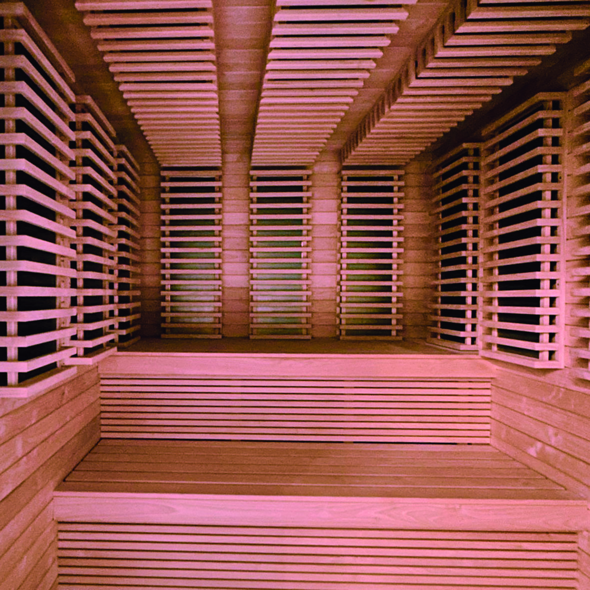 It uses infra-red light, which is invisible to the human eye but felt as heat, to penetrate the skin and warm the body directly. Infrared waves target muscles and tissues, providing deeper warmth without overheating the surrounding air. This process encourages sweating at a lower temperature, which is more tolerable for longer periods. Smaller infra-red saunas are often more efficient as the infrared heaters can more effectively concentrate their heat on the body. This can result in a more intense and beneficial sauna experience, as the heat penetrates the skin more directly.